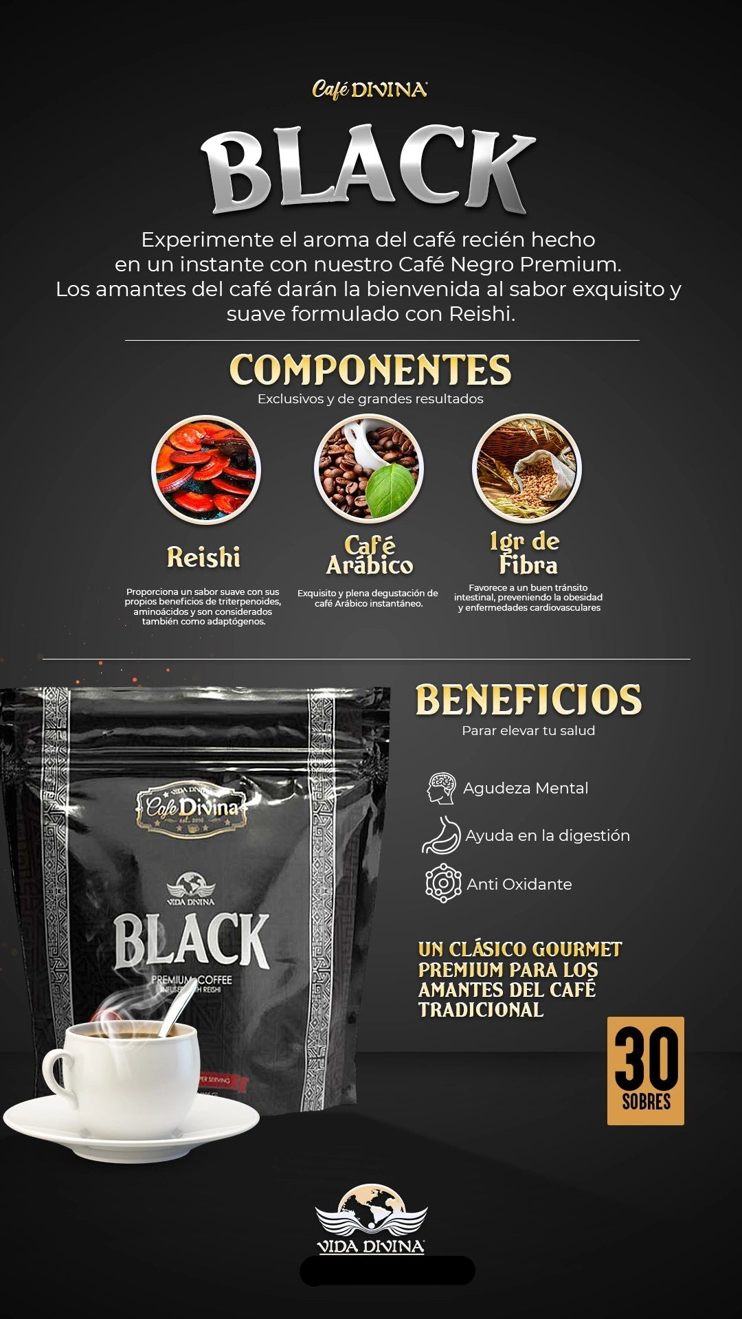 Experimente el aroma del café recién hecho en un instante con nuestro Café Negro Premium. Los amantes del café darán la bienvenida al sabor exquisito y suave formulado con Reishi.