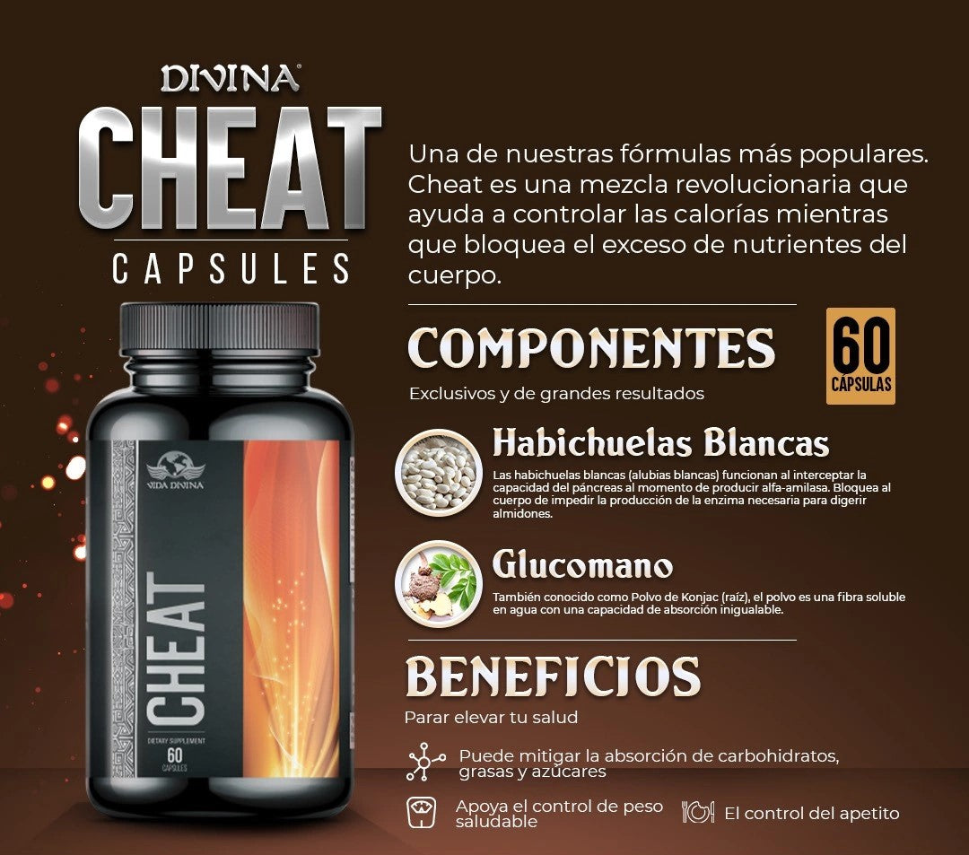 Una de nuestras fórmulas más populares. Cheat es una mezcla revolucionaria que ayuda a controlar las calorías y a bloquear los nutrientes no deseados.