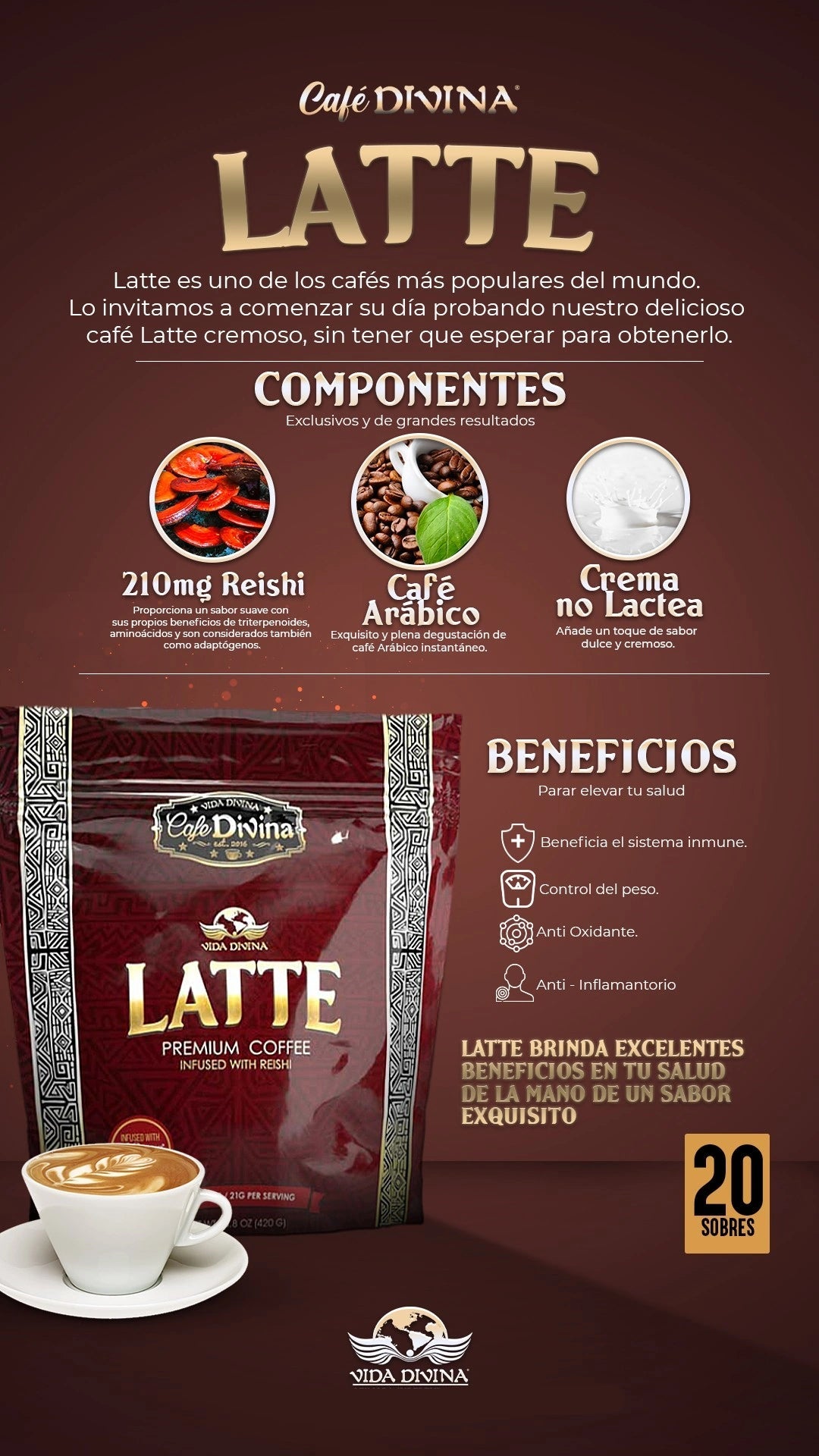 Lo invitamos a comenzar su día probando nuestro cremoso y delicioso Latte formulado con granos de café Arábica y Reishi.