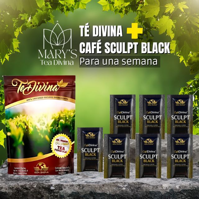 Un dúo ideal para quienes buscan limpieza interna y control de peso, combinando los beneficios del Té Divina con el delicioso Café Sculpt Black.